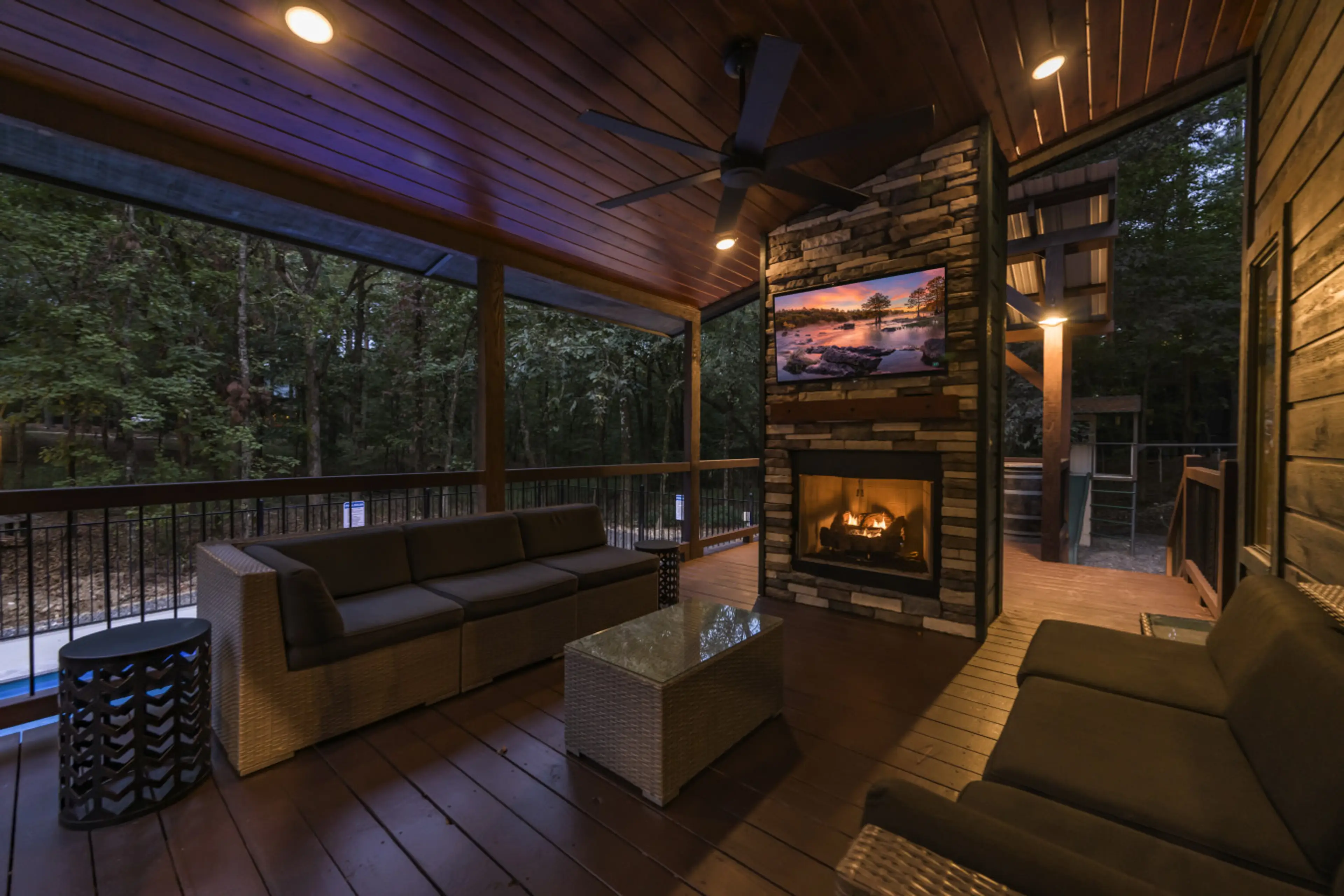 New Heated Pool & Full House Generator!! Welcome to Wine Time, your ultimate single-story cabin getaway! With 4 luxurious king suites, a cozy bunk room, and sleeping space for up to 16 guests, there's room for everyone. We're also pet-friendly, so bring along your furry friends! HEATED POOL | SHUF...